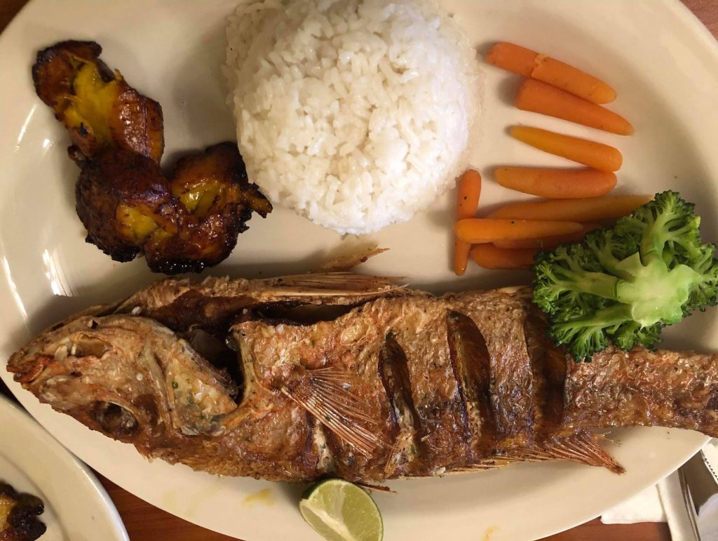 One of the island classics is the selection of Mofongo, a twist on plantain. Which was cool, however I never had a stuffed plantain. They stuff the plantains with chicken, seafood, or shrimp. I had to have them all. My main course was a whole red Snapper fried with garlic and spices. Omg! I was in heaven the way the spices smelled and tasted. The dessert menu was interesting. Cornbread and ice cream and cookies and cheesecake caught my eyes immediately. Those combinations are weird asf to me, but you cannot beat the price of less than $10.