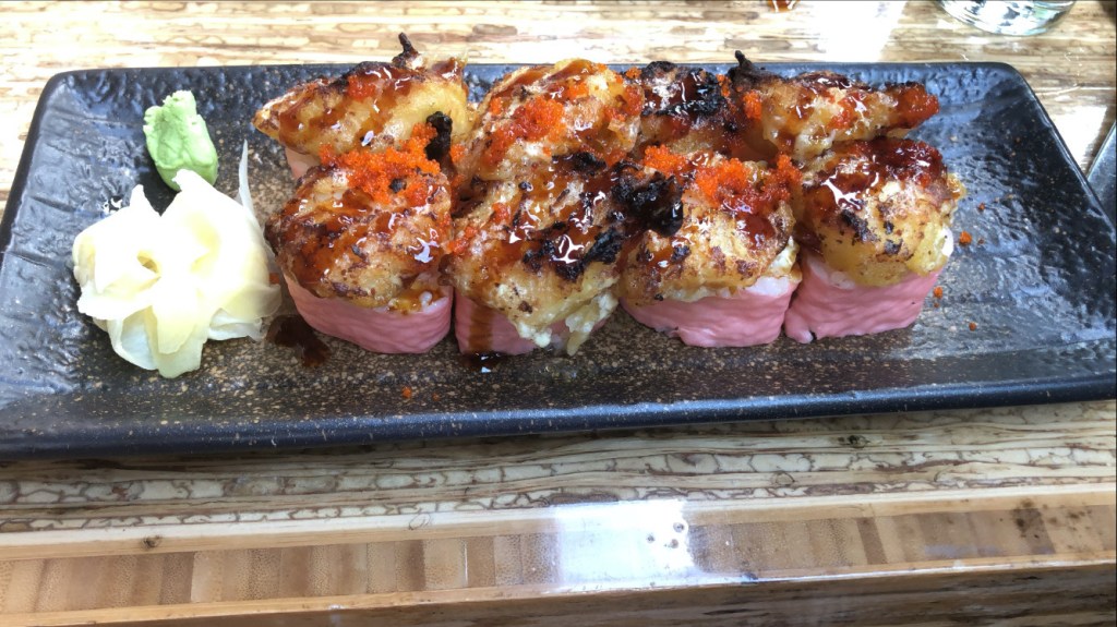 The last thing to graze my tastebuds – golden scallops. This roll was truly amazing. Comprised of tiger shrimp, avocado and mango, wrapped in soy paper and topped with dynamite scallops, masago and eel sauce. Of course everything about the Golden Scallops roll was fresh. Definitely rating this roll a 10 out of 10.